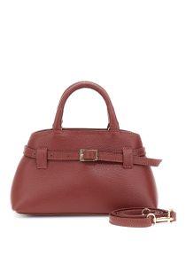 lederhandtasche mit frontgurt und geprägtem logo bordeaux