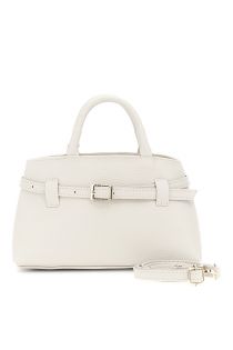 lederhandtasche mit frontgurt und geprägtem logo cream