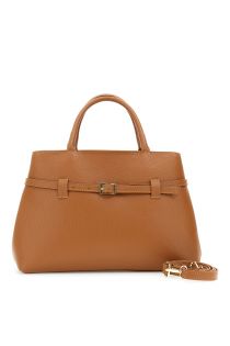 lederhandtasche mit riemen und schnalle auf der vorderseite tan