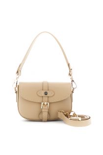 lederklappe mit kurzem schulterriemen, schlaufe mit emaillierter niete und schnalle taupe