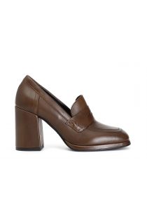 Damen-mokassin aus leder mit verzierung auf der oberseite. quadratische spitze und 85 mm absatz. innensohle aus leder. ein sehr vielseitiger und schicker schuh mit dem sich büro- und freizeitlooks stilvoll interpretieren lassen.