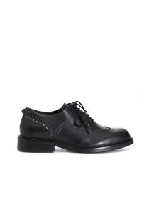 Schnürschuh für damen aus leder mit verchromten mikro-nieten verziert. die innensohle ist aus leder gefertigt.