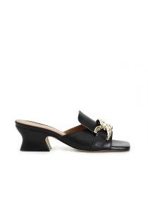 lederpantoletten mit kette black