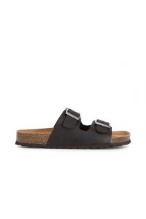 lederpantoletten mit zwei riemen dark brown