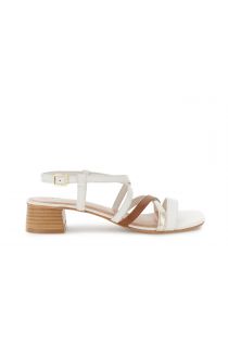 Ledersandalen mit 4 cm hohem blockabsatz und mehrfarbigen geflochtenen riemen verziert mit metallischen details. die feminine und zugleich markante silhouette der verstellbare riemen und der stabile sitz machen diesen schuh zur perfekten ergänzung für jeden alltagslook.
