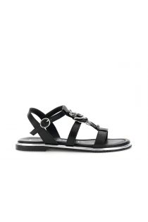 ledersandale mit t-riemen und schmuckaccessoire black