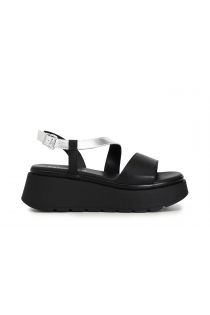 ledersandalen auf keilsohle mit asymmetrischem riemen black