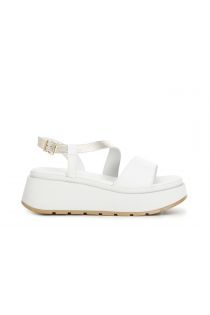 ledersandalen auf keilsohle mit asymmetrischem riemen white