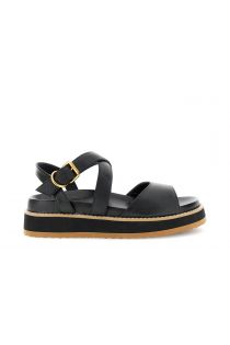 Plateau-sandalen aus echtem leder mit schlichtem modernem design. die weichen riemen umschließen den fuß während der verstellbare riemen für sicheren halt sorgt. die 5 cm dicke sohle bietet komfort und sicheren halt. lederinnensohle. perfekt für alltagslooks und trendige sommeroutfits.