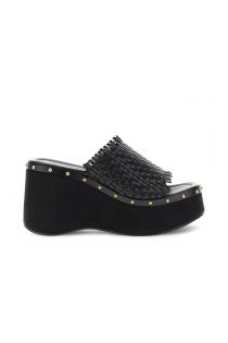 ledersandalen mit keilabsatz black