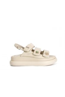 ledersandalen mit knöpfen und klettverschluss beige