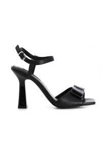 Ledersandalen mit knoten. innensohle leder. verstellbares knöchelriemchen. 100 mm hoher absatz.