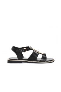 ledersandalen mit schnalle und dreifachem accessoire black