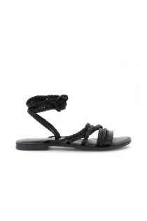 ledersandalen mit zopfstickerei und sklavenverschluss black