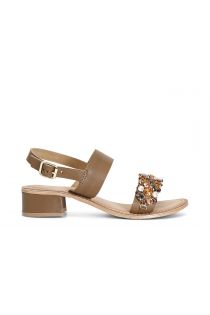 Ledersandalen mit zwei riemen und strass absatzhöhe 35 mm.