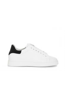 Herren-schnürsneaker aus leder. futter und innensohle sind aus leder. schuh mit abgerundeter form.