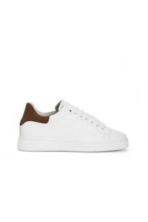 Herren-schnürsneaker aus leder. futter und innensohle sind aus leder. schuh mit abgerundeter form.