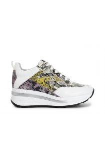 Geschnürte leder-sneaker mit einem oberteil mit animal-print-patchwork und laminierten details. zweifarbige boxsohle mit geprägtem logo.