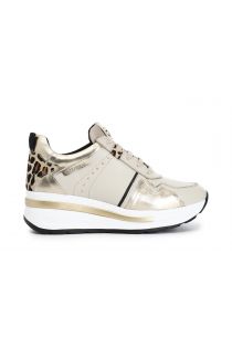 Leder-sneaker mit auffälligen einsätzen aus cavallino-leder im animal-print und laminierten einsätzen. zweifarbige boxsohle mit geprägtem logo.
