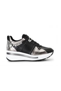 ledersneaker mit ponyhaar- und laminierten einsätzen black/metal gun