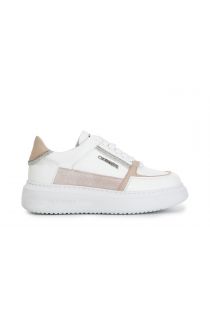 Sneakers aus leder mit strassbesetztem schaft einsätzen aus wildleder und laminierten einsätzen. kassettensohle und innensohle aus leder.