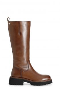 Damenstiefel aus leder mit 50 mm hohem absatz und individuellem zierring. die innensohle ist aus leder gefertigt.