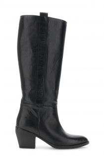 Schwarze Lederstiefel mit schlichtem, aber ausdrucksstarkem Design und Ton-in-Ton-Details. Lederfutter und -innensohle. 7 cm hoher Blockabsatz für lässige, moderne Eleganz.