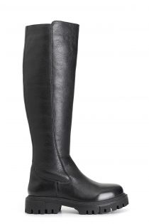 Hoher lederstiefel mit reißverschluss für ein einfaches anziehen. 35 mm absatz. innensohle aus leder. profilsohle.