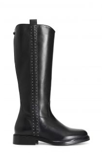 Lederstiefel mit einer fülle von seitlichen nieten die dank eines spiels von nähten sowohl harmonie als auch dynamik verleihen. die innensohle ist aus leder gefertigt.