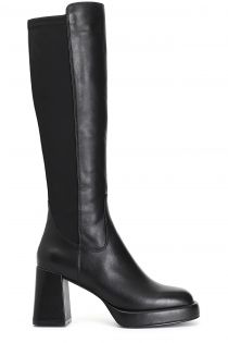 Stiefel aus leder und stretch mit 80 mm absatz und 20 mm plateausohle. die innensohle ist aus leder gefertigt. komfort und eleganz zugleich und ein einzigartiger charakter der zu jedem outfit passt.