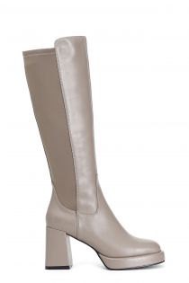 Stiefel aus leder und stretch mit 80 mm absatz und 20 mm plateausohle. die innensohle ist aus leder gefertigt. komfort und eleganz zugleich und ein einzigartiger charakter der zu jedem outfit passt.