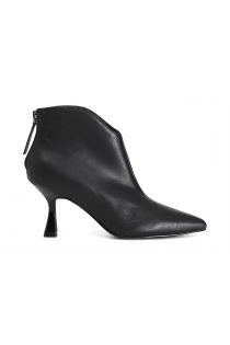 Damenstiefelette aus leder mit 80 mm hohem absatz spitz zulaufend. die innensohle ist aus leder gefertigt.