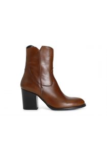 Damen-lederstiefelette im texanischen stil mit dekorativem nietenmuster. 80 mm absatz. innensohle aus leder. ein schuh mit lebhaftem charakter der jedem look einen zusätzlichen kick gibt.