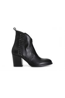 Damen-lederstiefelette im texanischen stil mit dekorativem nietenmuster. 80 mm absatz. die innensohle ist aus leder gefertigt. ein schuh mit lebhaftem charakter der jedem look einen zusätzlichen kick gibt.