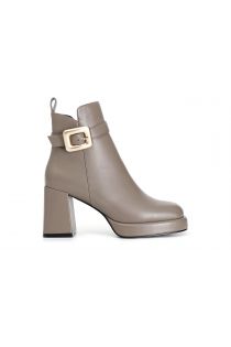 lederstiefelette mit schnalle taupe