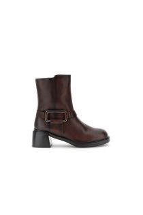Schwarze Leder-Ankle-Boots mit dekorativem Seitenclip. Bequemes und modernes Design. 6 cm hoher Blockabsatz. Perfekt für urban-elegante Looks mit Charakter.