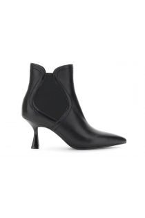 Stiefeletten aus Leder mit asymmetrischem Gummizug an den Seiten, Lederinnensohle und 7,5 cm hohem Blockabsatz. Raffiniertes Design für elegante und feminine Looks – perfekt für Tag und Nacht.