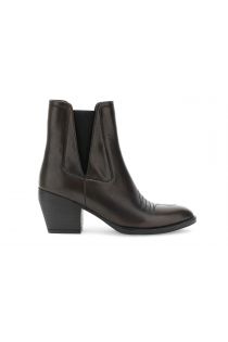 Stiefelette aus Leder mit elastischem Seiteneinsatz, schmal zulaufender Silhouette und markanten Ziernähten. Lederfutter und -innensohle. 7 cm Blockabsatz. Ein Must-have für urbane Looks.
