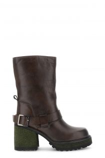 Schwarze Leder-Ankle-Boots mit Knöchelriemen und Schnalle, 9 cm hohem Absatz, Velourslederoptik und Profilsohle. Reißverschluss innen und Lederinnensohle. Ein kühner und stylischer Look für den Winter.