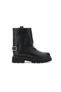 Kampfstiefel aus beschichtetem Leder mit Schaft und seitlicher Schnalle. Der 4 cm hohe Absatz und die profilierte Sohle verleihen ihnen einen markanten Look und hohen Tragekomfort. Ideal für einen selbstbewussten Auftritt.