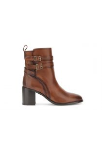 Stiefeletten aus Leder mit doppelter seitlicher Schnalle und innenliegendem Reißverschluss. Eine Lederinnensohle und ein 7,3 cm hoher Absatz verleihen ihnen eine markante, moderne Eleganz.