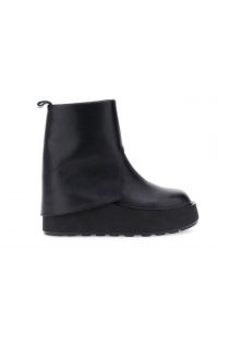 Stiefeletten aus Leder in modernem Design. Innenliegender Reißverschluss, Lederinnensohle, 7,5 cm Absatz und 4 cm Plateau für kühne Eleganz und Komfort.