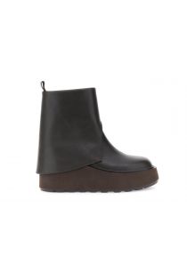 lederstiefeletten mit schaft und plateau dark brown