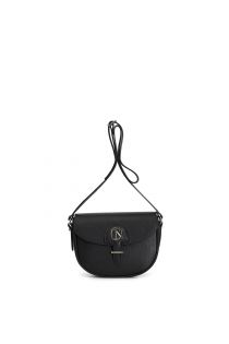 Ledertasche mit überschlag und cafènoir-logo. magnetverschluss und verstellbarer schulterriemen.