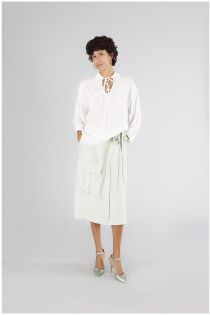 Bluse mit 3/4-ärmeln und schleifenkragen. hergestellt aus viskose-marocaine. bequeme passform. perfekt kombinierbar mit einer hose oder einem rock.