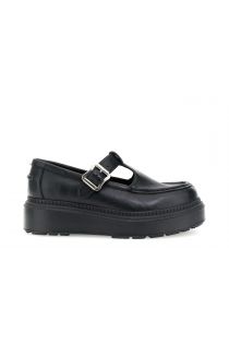 Mary-Jane-Loafer aus gebürstetem Kunstleder mit seitlicher Schnalle und 35 cm langer, genoppter Sohle. Lederinnensohle. Schulmädchen-Style und selbstbewusste Ausstrahlung für jeden Look.