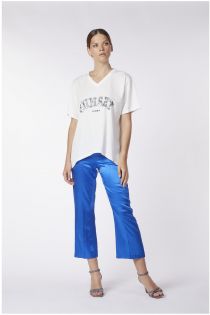 Maxi t-shirt aus 100 % baumwolljersey mit auffälligem pailletten-schriftzug „sunset“.