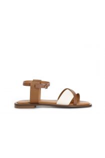 Mehrfarbige ledersandalen mit asymmetrischen riemen und knöchelriemchen.