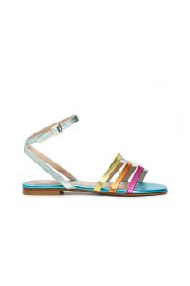 Mehrfarbige Metallic-Sandalen aus Kunstleder