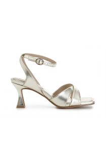 Metallic-sandalen mit überkreuzung und knöchelriemen. absatzhöhe 70 mm